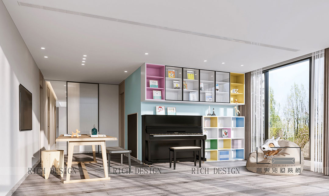 并獨(dú)設(shè)了一間供孩子和父母交流陪伴的功能區(qū),空間更顯靈動(dòng)與妙趣,靈動(dòng)之姿。