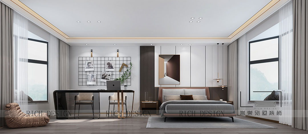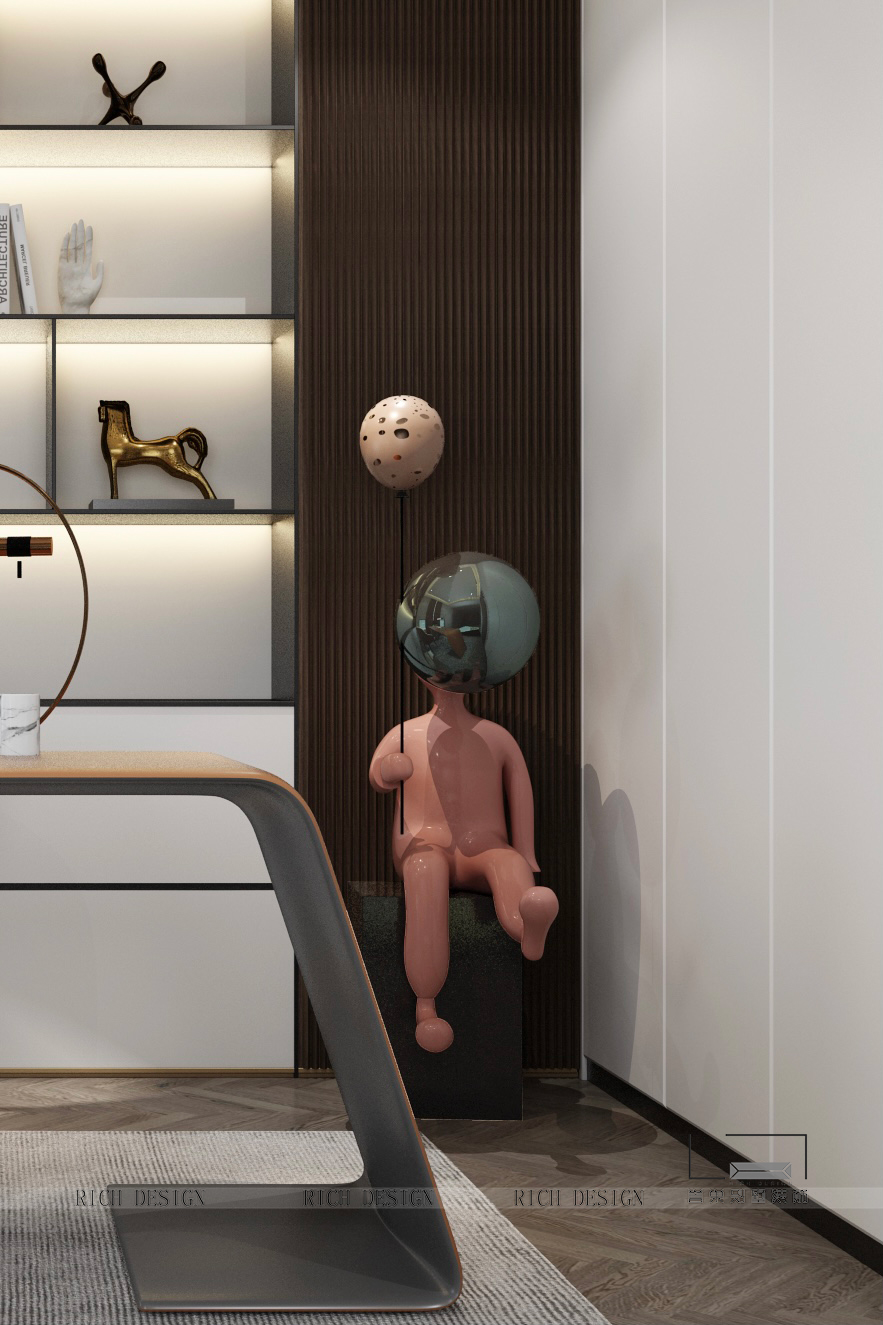 設(shè)計師也深度考量風(fēng)景與居住場域的關(guān)系,為品質(zhì)生活拉開多元序幕,書房私享打造屬于個人的夢想天地,工作之余,這里是創(chuàng)意飛行的地方,宅家辦公兩不誤。