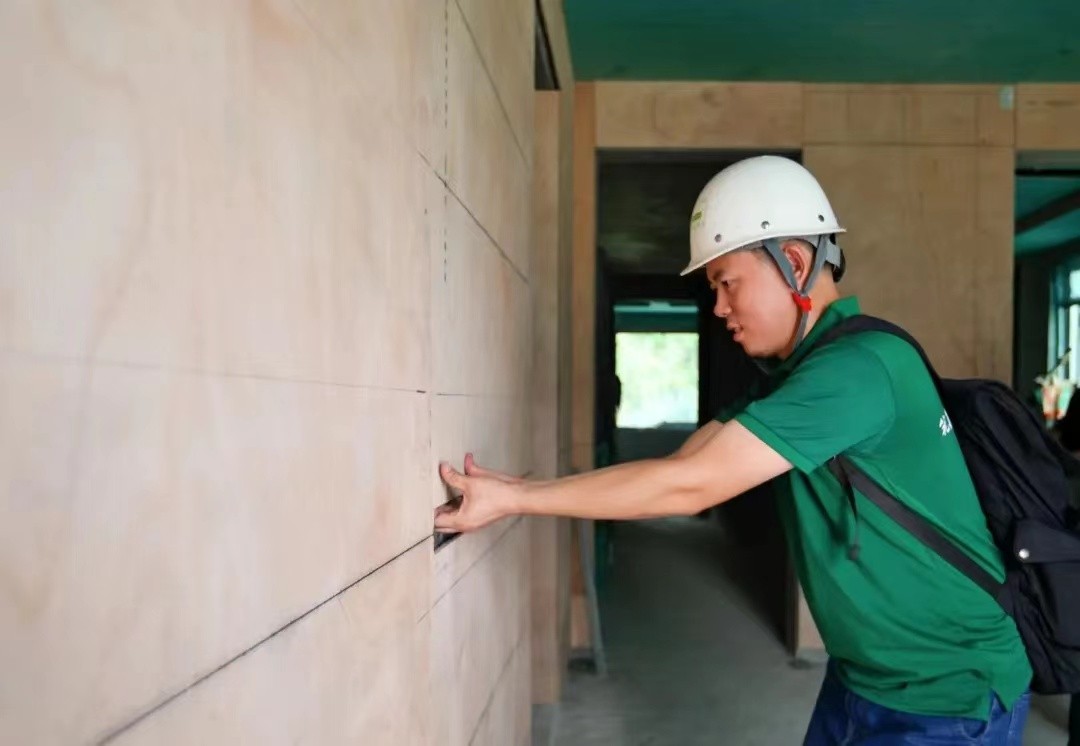 本次巡檢,馬經(jīng)理特別介紹了譽(yù)巢木作項(xiàng)目的部分專屬工藝。