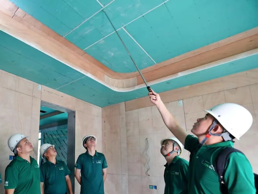 本周,譽(yù)巢工程部馬經(jīng)理按時(shí)來(lái)到深圳九號(hào)公館工地現(xiàn)場(chǎng)進(jìn)行定期巡檢,此時(shí)正值施工的木作項(xiàng)目階段,本次巡檢主要是對(duì)該階段的部分工程進(jìn)行完工驗(yàn)收,保證施工進(jìn)程和工程質(zhì)量。