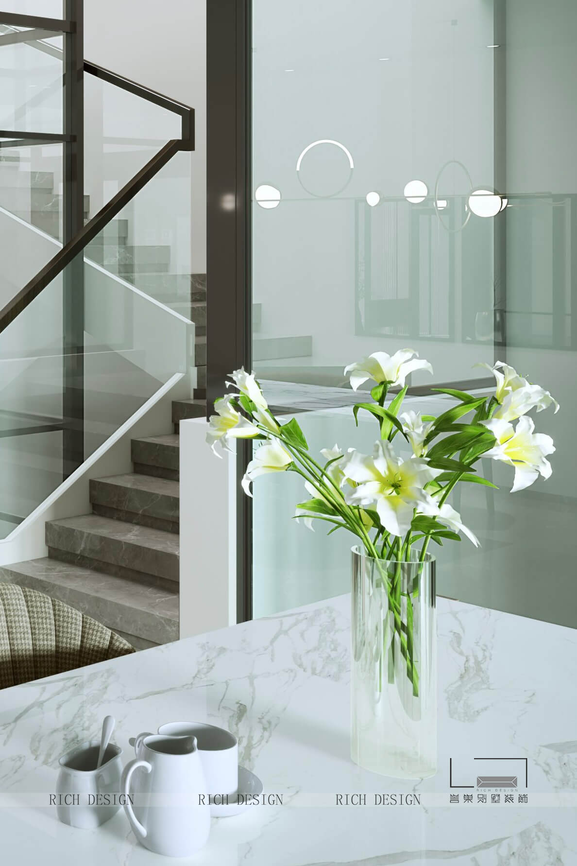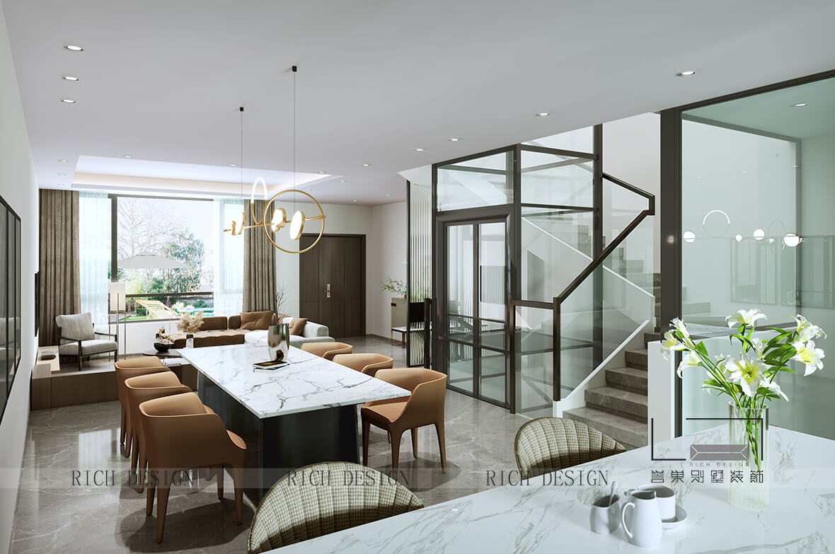空間上以充分運用500㎡的聯(lián)排別墅優(yōu)勢為設計考量,調(diào)整原始結(jié)構(gòu)、采光、空間的利用效果,以更開闊的尺度,展示生活的多元場景,打造精而靜謐的沉穩(wěn)空間,呈現(xiàn)高調(diào)的生活美學氛圍。